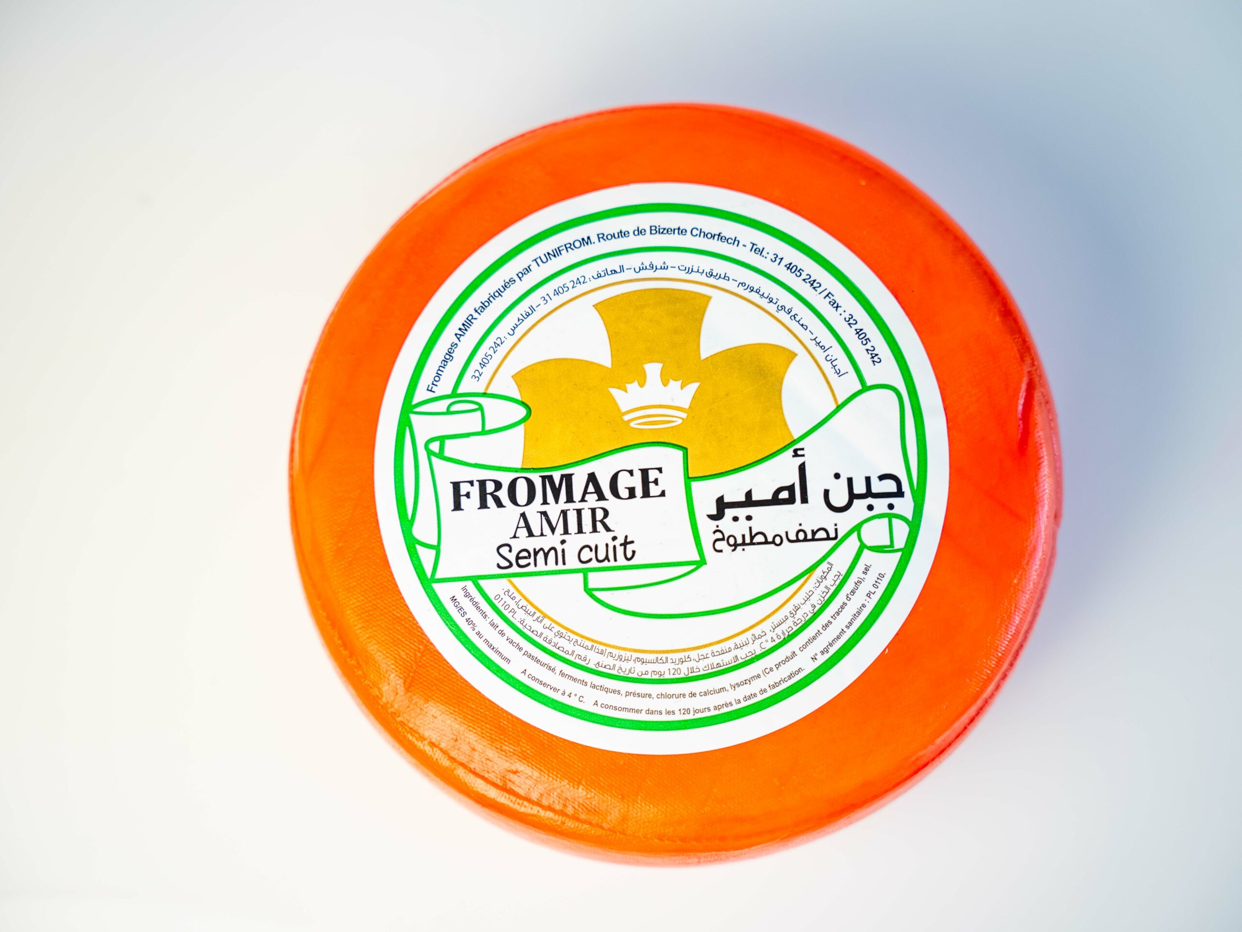 Fromage Amir à pâte semi-cuite — 2 kg env. — DLC : 120 jours.