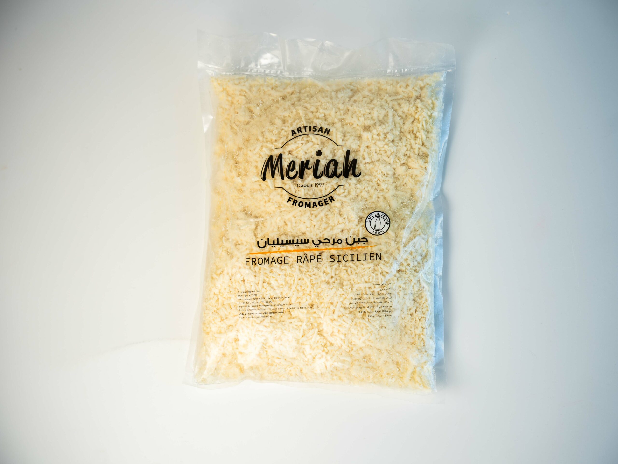 Le Râpé Sicilien Meriah est du fromage sicilien finement râpé, avec son goût lacté caractéristique. Parfait pour relever vos pâtes, soupes et plats tunisiens. Poids : environ 1 kg. DLC : 15 jours.